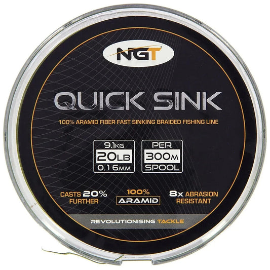 NGT Quick Sink Braid Carp Fishing Line Moss Green 20-25lb - Large 300m Spool